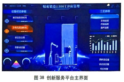 以智能化鍛造生產(chǎn)閉環(huán)線為核心,基于鍛件的工藝、生產(chǎn)過程、在線監(jiān)測數(shù)據(jù)、銷售數(shù)據(jù)和使用過程等,與人工智能生產(chǎn)技術(shù)相融合,開發(fā)一套智能化鍛造服務(wù)平臺。平臺具有鍛件產(chǎn)品質(zhì)量監(jiān)督、智能工藝設(shè)計(jì)、自動(dòng)控制調(diào)節(jié)設(shè)備參數(shù)、自動(dòng)調(diào)節(jié)生產(chǎn)頻率等功能。通過圖36所示熱模鍛數(shù)據(jù)服務(wù)創(chuàng)新服務(wù)平臺顯示系統(tǒng)呈現(xiàn),實(shí)現(xiàn)狀態(tài)感知、實(shí)時(shí)分析、精準(zhǔn)執(zhí)行及自主決策。