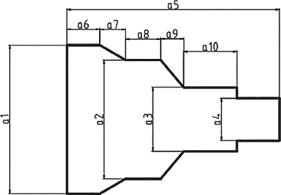 輸出和輸入的向量設(shè)計(jì),是將鍛件的特征信息模型進(jìn)行必要的數(shù)據(jù)處理,對數(shù)據(jù)進(jìn)行歸一化處理,把所有的數(shù)據(jù)都放置于[0.1]之間,主要原因?yàn)殡[藏層所選用的是Sigmod型激勵(lì)函數(shù)。圖29是萬向節(jié)鐘形罩最終鍛件的外形簡要圖,鍛件特征信息模型的初始數(shù)據(jù)取自此圖。圖30是萬向節(jié)鐘形罩的模具圖,輸出向量的數(shù)據(jù)取自此圖,主要是相應(yīng)模具的關(guān)鍵尺寸。